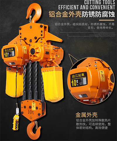 環鏈電動葫蘆特性好,4倍抗拉力抗拉力,就算超重,也不容易破裂,總是逐漸形變。環鏈電動葫蘆下設儲鏈袋,應用時傳動鏈條能全自動存儲鏈袋內,可防止傳動鏈條自得往下墜時卡死或沾到油漬。環鏈電動葫蘆有高效率、輕質電動機,無石棉制動系統,節能型。環鏈電動葫蘆有高效率、輕質電動機,無石棉制動系統,節能型。環鏈電動葫蘆有高韌性安全性起重吊鉤,承擔出現意外過載沖擊性不容易產生破裂,僅僅慢慢形變。
