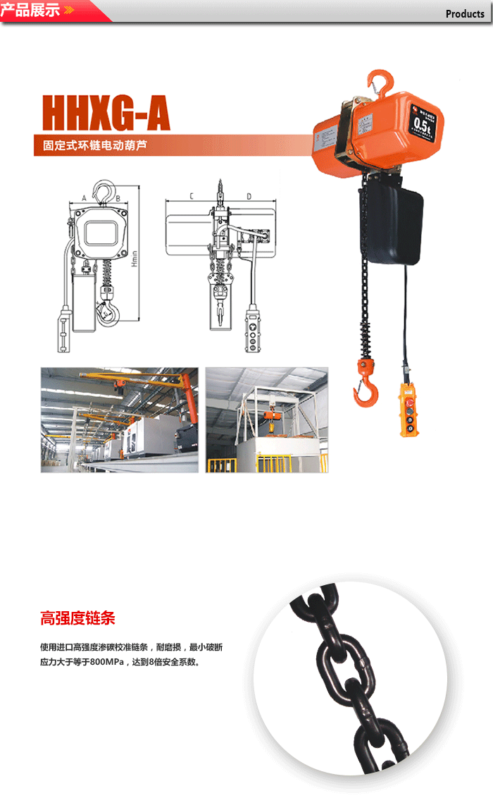 8.起重鏈條是特殊合金鋼制作并經過熱處理,不能私自進行焊接或改裝。