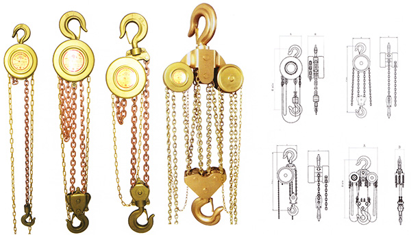 防爆手拉葫蘆以鋁青銅、鈹青銅作為毛坯,手拉葫蘆外殼采用H62銅合金材料。受力摩擦部位包括構 成手拉葫蘆的起重輪、手鏈輪、墻板、掛鉤、齒輪、齒輪軸采用鋁青銅、鈹青銅合金材料。