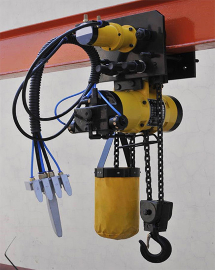 2、吊鉤式氣動(dòng)葫蘆安裝:將吊鉤就坐落于安裝構(gòu)造上。確保吊鉤鎖已合閉;